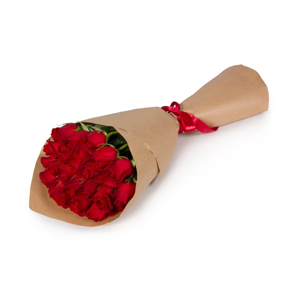 Элегантный букет из красных роз в экологичной крафтовой упаковке — это современное проявление искренних чувств.