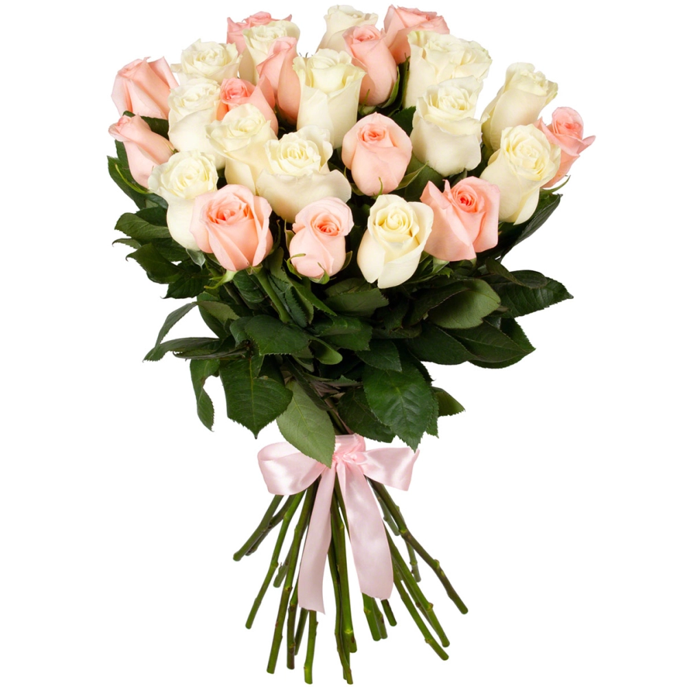Букет из 25 розовых и белых роз
