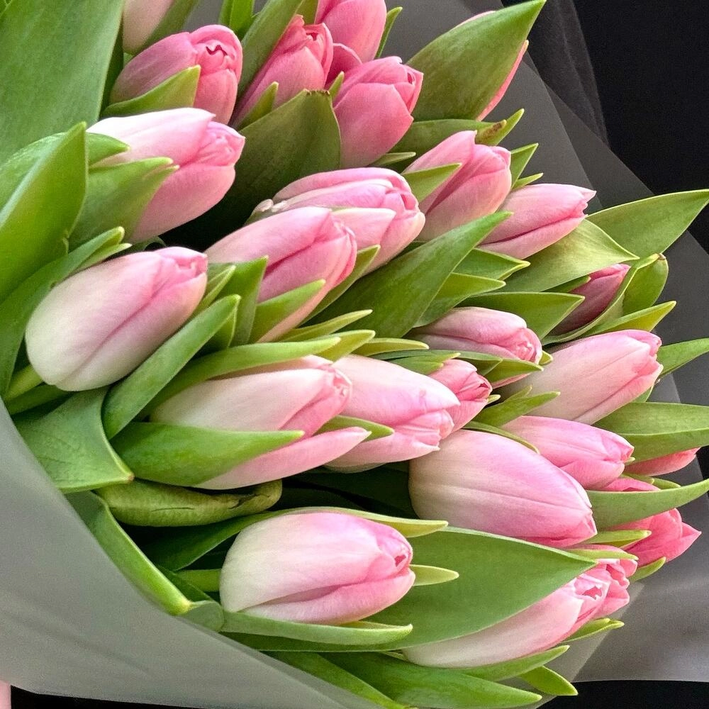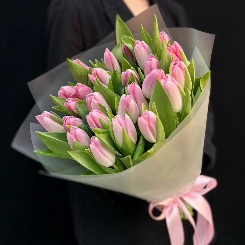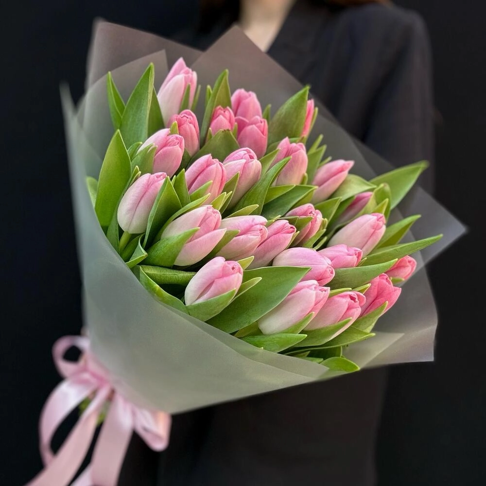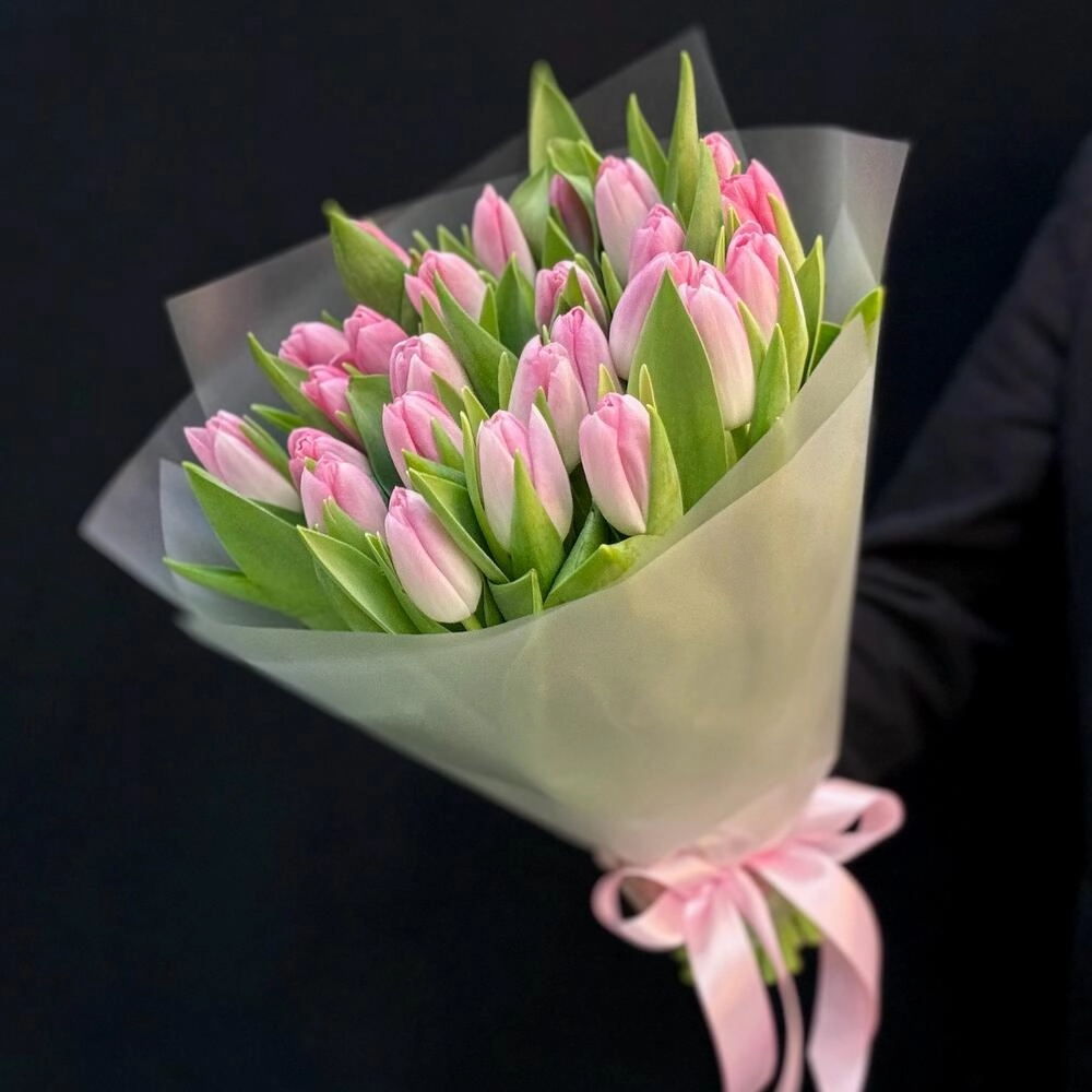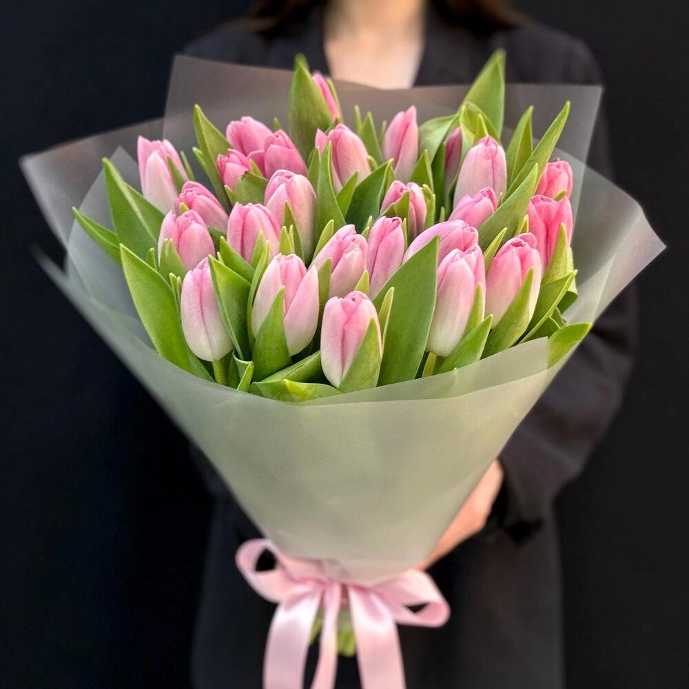 Букет из нежно розовых тюльпанов, которые привезены из Голландии.