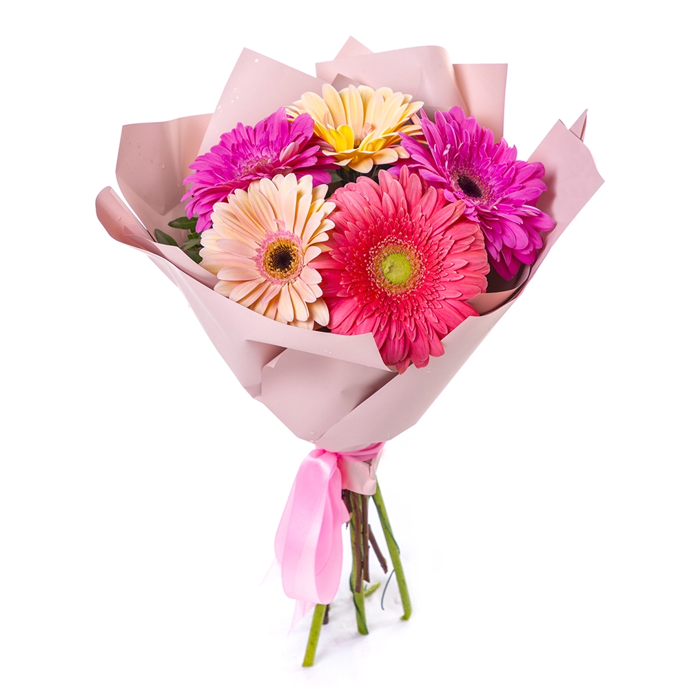Жизнерадостная композиция из 5 свежих гербер разных цветов — воплощение летнего настроения. Идеальный выбор для подарка оптимистичному человеку. Магазин цветов Астрахань.