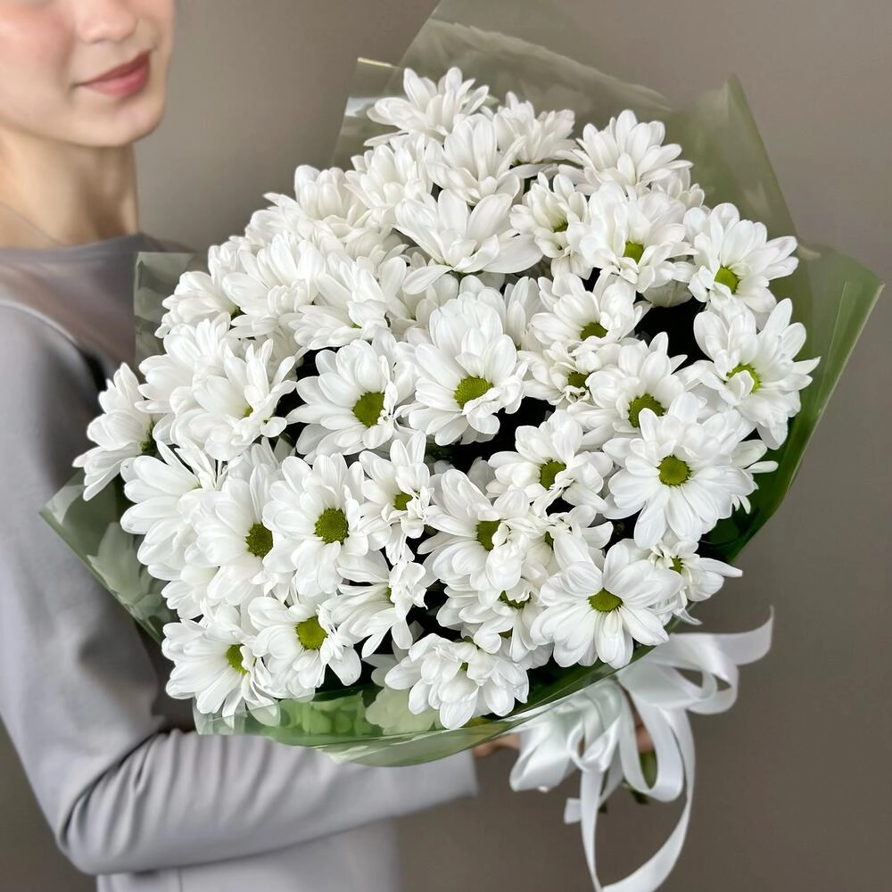 Воздушный букет «Мечты о лете» из белоснежных кустовых хризантем напоминает о теплых летних днях. Эти пышные цветы с нежными лепестками создают атмосферу легкости и радости. Идеальный выбор для подарка или украшения интерьера. Магазин цветов с доставкой в Астрахани.