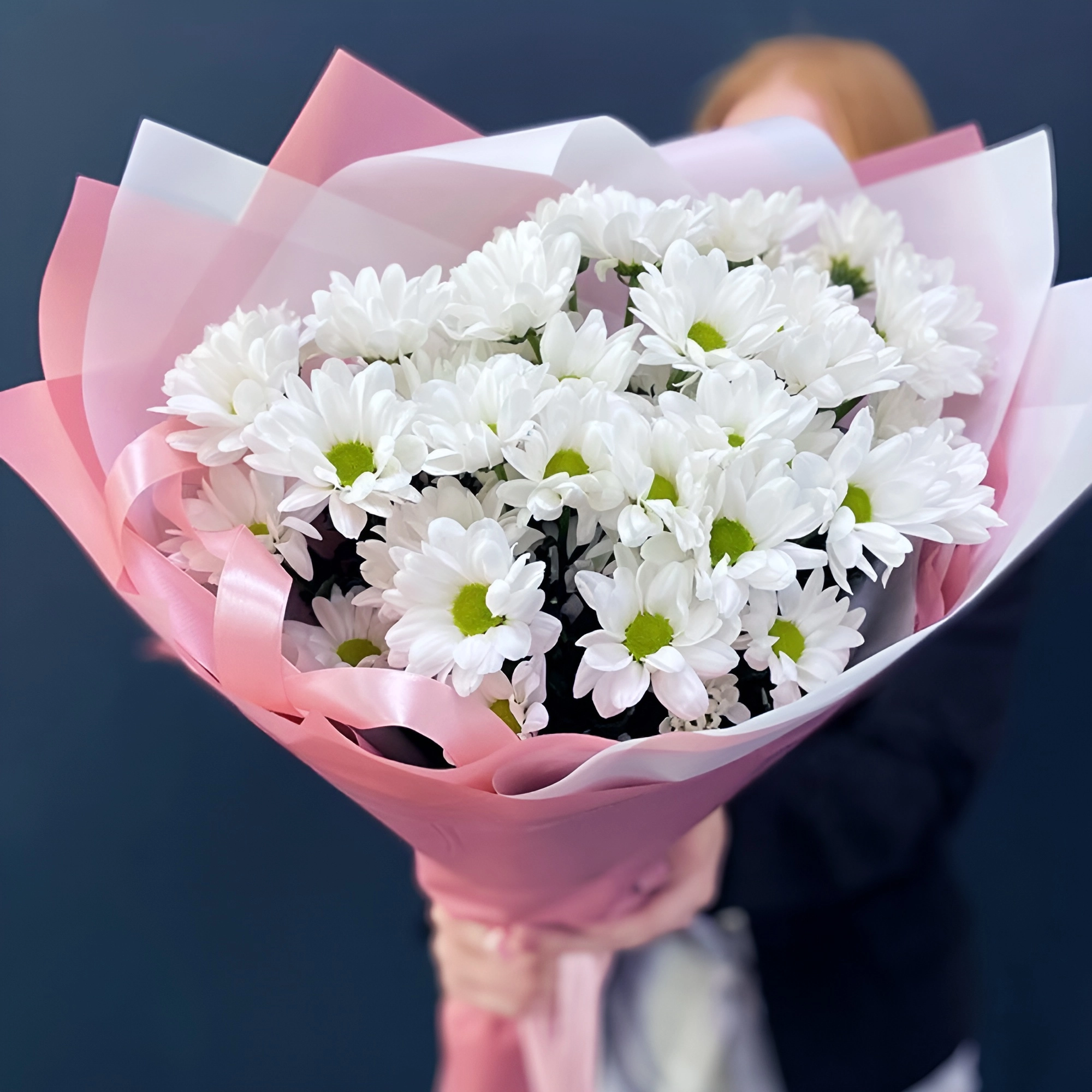 Букет «Розовое счастье» – нежность белых хризантем