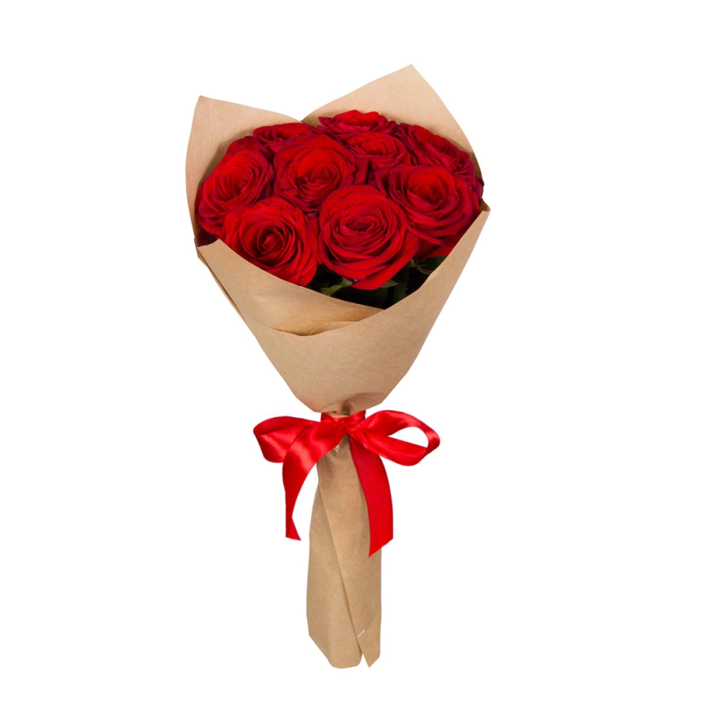 Подарите страсть и нежность с элегантным букетом из красных роз в стильной крафтовой упаковке.